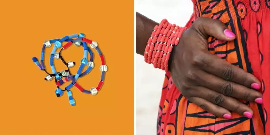 然后將珠子串起來出售給Ocean Sole