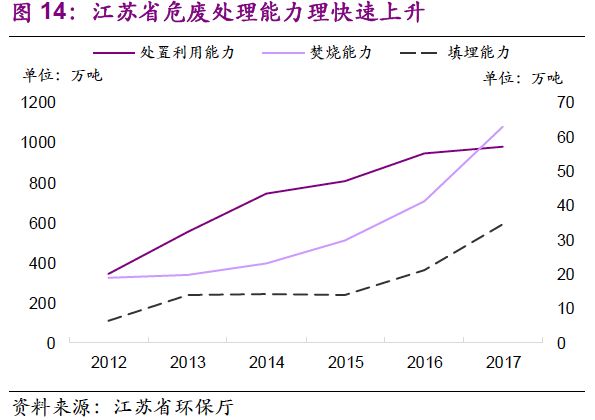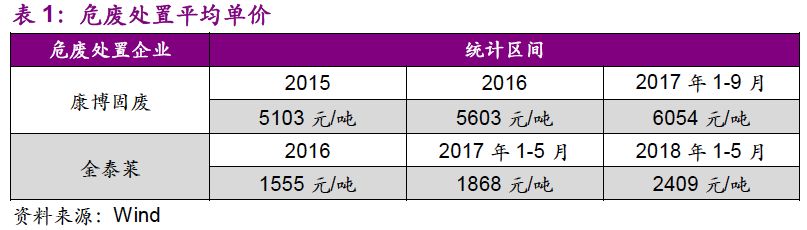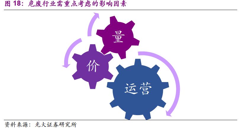 1. “量”的驅(qū)動力已經(jīng)由工業(yè)發(fā)展轉(zhuǎn)變?yōu)榄h(huán)保執(zhí)法:環(huán)保壓力下,危廢處置需求“歷史存量+當期增量”雙層疊加,產(chǎn)能釋放速度有望加快;“價”的波動也在反映供需的邊際變化,短期上行、長期回穩(wěn)。