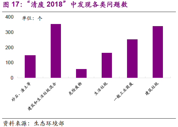當前危廢處置需求“雙層疊加”——歷史存量+當期增量。一方面,在制度完善和嚴督察背景下,每年新增危廢中瞞報、漏報行為減少,非法轉(zhuǎn)移和傾倒途徑被切斷,大量危廢尋找合法處置途徑。另一方面,在環(huán)保督察中大量危廢貯存被發(fā)現(xiàn),短期內(nèi)面臨行政壓力,處置需求十分迫切。存量和增量疊加,危廢處置需求暴增,在供給增加速度不及的情況下,市場熱度持續(xù)提升。