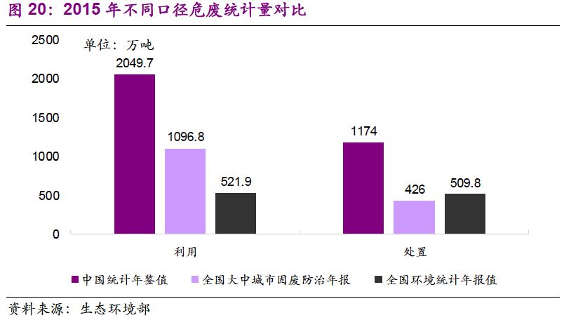 由于統(tǒng)計范圍差異,危廢產(chǎn)生、利用和處置量存在不同口徑值。