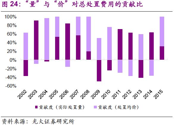 2. 創(chuàng)新性提出“量”和“價”雙驅(qū)動力解析,并對其歷史性波動做出解釋。我們認為,處置量提高的驅(qū)動因素已經(jīng)由工業(yè)發(fā)展轉(zhuǎn)變?yōu)榄h(huán)保執(zhí)法,價格波動反映供需邊際變化,短端呈上行趨勢,長端隨著供給提升將逐步回穩(wěn)。