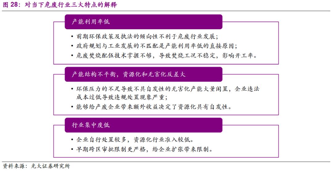 我們認為,當前危廢行業(yè)的三大痛點分別是:產(chǎn)能利用率低、產(chǎn)能結(jié)構(gòu)不平衡和行業(yè)集中度低。