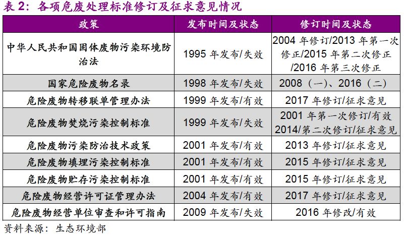 2016年12月,最高人民法院、最高人民檢察院再次發(fā)布關(guān)于辦理環(huán)境污染刑事案件適用法律若干問題的解釋,對違法傾倒、無證經(jīng)營危險廢物行為進行從重處罰,再次推高危廢行業(yè)熱度。
