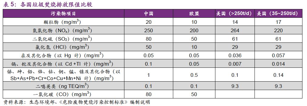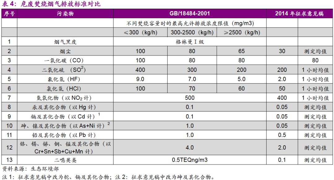 危廢行業(yè)提標是必然趨勢。對比生活垃圾焚燒領域,2014年出臺的《生活垃圾焚燒污染控制標準》/GB18458-2014在二噁英、汞及其化合物指標上就已經(jīng)達到了歐盟標準。2017年8月,《〈生活垃圾焚燒污染控制標準〉(GB18485-2014)修改單(征求意見稿)》編制說明中明確提出參照歐盟《歐盟工業(yè)排放指令》(2010/75/EC)。因此,危廢領域排放標準向歐盟靠齊是必然趨勢。