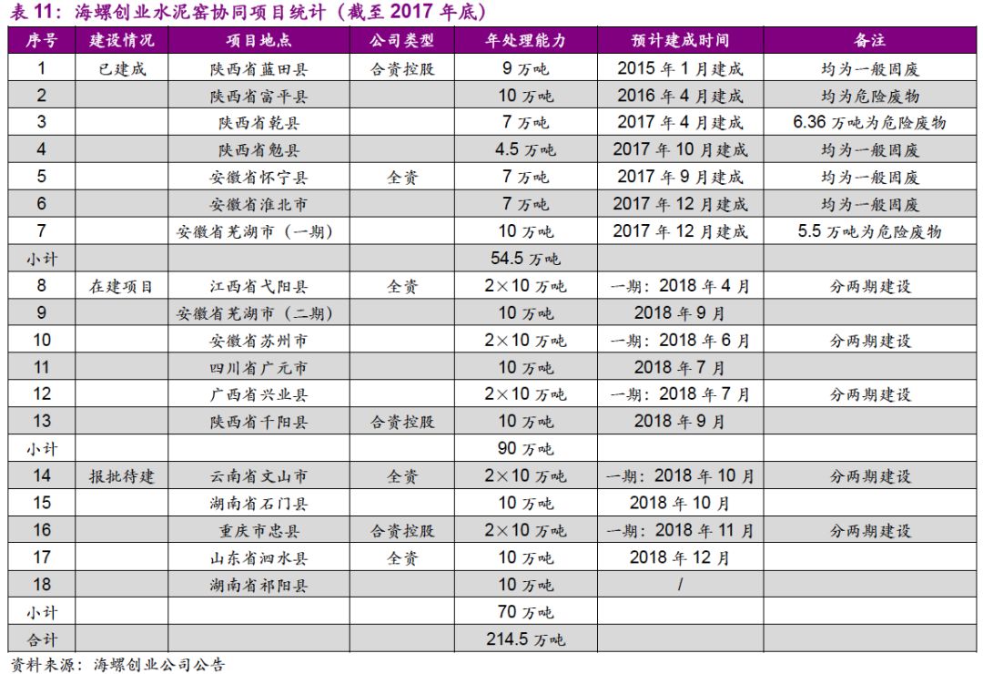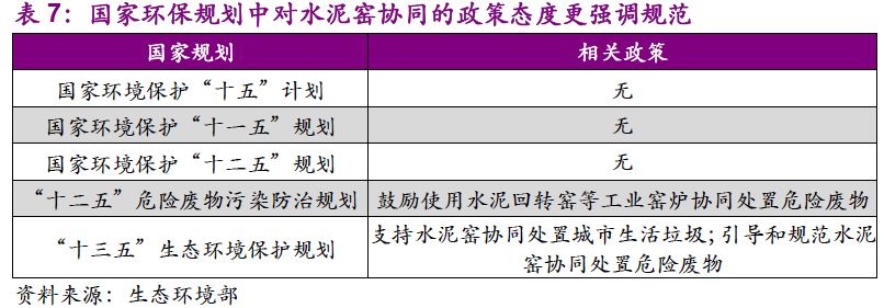3. 對水泥窯協(xié)同處置持謹慎態(tài)度,行業(yè)發(fā)展面臨規(guī)范化約束,本身實力雄厚、管理規(guī)范的水泥企業(yè)有望依托自身資源,快速布局全國市場并接受標準提升考驗。