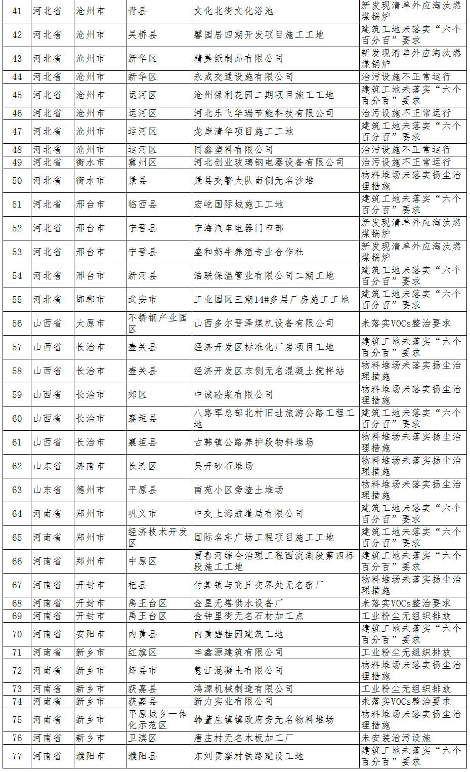 8月11日,2018-2019年藍天保衛(wèi)戰(zhàn)重點區(qū)域強化督查工作繼續(xù)開展,200個督查組按照工作方案要求,對京津冀及周邊地區(qū)204個縣(市、區(qū))進行督查,發(fā)現(xiàn)涉氣環(huán)境問題78個(其中1家企業(yè)有2臺應淘汰燃煤鍋爐,見附件),如下: