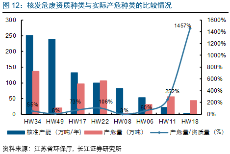 表面處理廢物(HW17)/有機溶劑廢物(HW06)/廢酸(HW34)比例分別為73%、60%、52%,資質利用率相對充足。