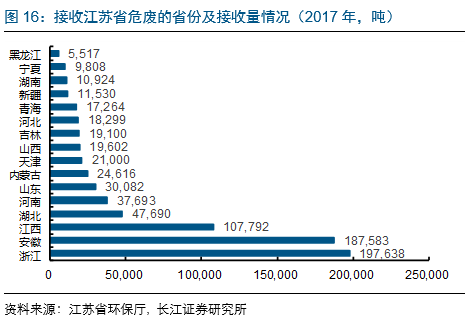 2017年跨省轉出危廢77萬噸,集中去浙江/安徽/江西