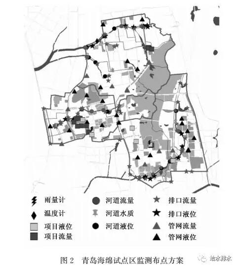 青島海綿試點區(qū)根據(jù)“源頭-過程-末端”的布點思路,在項目設施、管網(wǎng)、排口、河道進行在線監(jiān)測點的布設,主要監(jiān)測指標包括液位、流量、SS和DO。通過在線監(jiān)測網(wǎng)絡的系統(tǒng)化構建,能夠支持青島海綿試點區(qū)建設效果的全面考核,該監(jiān)測思路可為其他海綿城市的監(jiān)測考核提供參考。