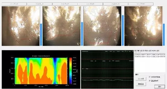 垃圾焚燒智能化燃燒控制技術(shù)在二段式垃圾焚燒爐排的上部安裝了4臺(tái)高溫?cái)z像設(shè)備,可覆蓋的爐排的燃燒段、烘干段,通過(guò)火焰輻射溫度場(chǎng)軟件,將火焰強(qiáng)度轉(zhuǎn)換為數(shù)據(jù)并反饋到DCS系統(tǒng)。