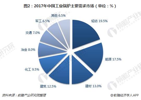 在我國工業(yè)生產(chǎn)中需要大量用熱的行業(yè),主要是輕紡行業(yè)能源行業(yè)。其用熱溫區(qū)和用量比例,和美國1977年對全國工業(yè)用熱的調(diào)查估計(jì)大體一致,工業(yè)用熱的參數(shù)范圍大約在300℃和1.0MPa以下。工業(yè)鍋爐應(yīng)用結(jié)構(gòu)中,輕紡工業(yè)約占19.5%,年需求量約5.25-5.85萬蒸噸/時(shí);能源余化工業(yè)約占27%,年需求量約7.29-8.1萬蒸噸/時(shí);建材工業(yè)以水泥為主,約占13.0%;年需求量約為3.51-3.9萬蒸噸/時(shí)。由于行業(yè)熱能應(yīng)用短期內(nèi)不會(huì)出現(xiàn)替代品,未來輕紡工業(yè)、能源工業(yè)、建材、建筑業(yè)、化學(xué)工業(yè)、冶金工業(yè)、交通運(yùn)輸業(yè)和軍工部門等仍將是工業(yè)鍋爐的主要市場。