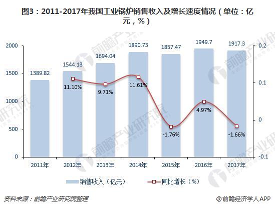 從行業(yè)的銷售收入來看,2011-2017年我國工業(yè)鍋爐行業(yè)銷售收入呈波動(dòng)態(tài)勢。2015年出現(xiàn)自2011年起的首次下滑,銷售收入為1857.47億元,較上年減少1.76%;2017年行業(yè)銷售收入再次出現(xiàn)下滑,為1917.3億元,下滑幅度位1.66%。這與能源政策和節(jié)能、環(huán)保要求的制約有著較大的關(guān)系。