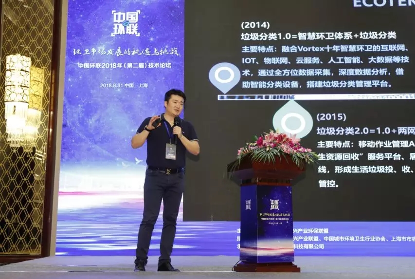 由中國戰(zhàn)略性新興產業(yè)環(huán)保聯(lián)盟主辦、上海環(huán)聯(lián)生態(tài)科技有限公司承辦的“中國環(huán)聯(lián)2018年(第二屆)技術論壇”日前在上海召開。蘇州市伏泰信息科技股份有限公司李曉華博士在本次論壇上重點報告了公司基于十年智慧環(huán)衛(wèi)匠心打造的全循環(huán)智能分類生態(tài)系統(tǒng)(ECOTEK),李博士從伏泰匠心十年的創(chuàng)新實踐、ECOTEK系統(tǒng)參與垃圾分類的歷史及最終形成的垃圾分類4.0 全循環(huán)智能分類生態(tài)系統(tǒng)三個方面發(fā)表了演講,與各位嘉賓深入交流了垃圾分類理念。