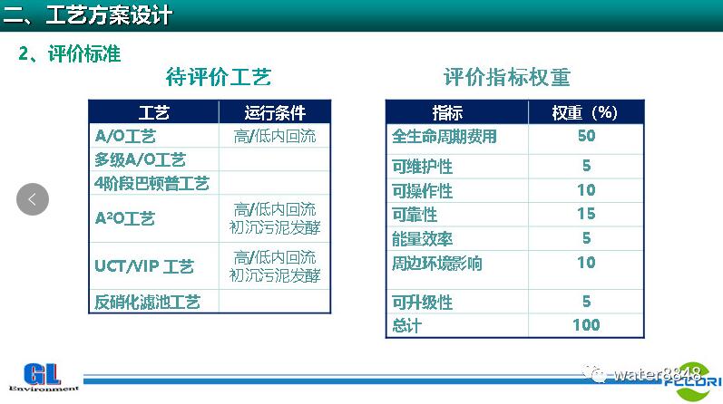 根據(jù)上述水質(zhì)要求,下圖列舉了具有脫氮除磷的污水處理工藝,并建立評價(jià)指標(biāo)體系對上述工藝進(jìn)行逐一評價(jià),從中優(yōu)選了高內(nèi)回流的A/O工藝、分點(diǎn)進(jìn)水的多級(jí)A/O工藝、4階段的Bardenpho工藝。