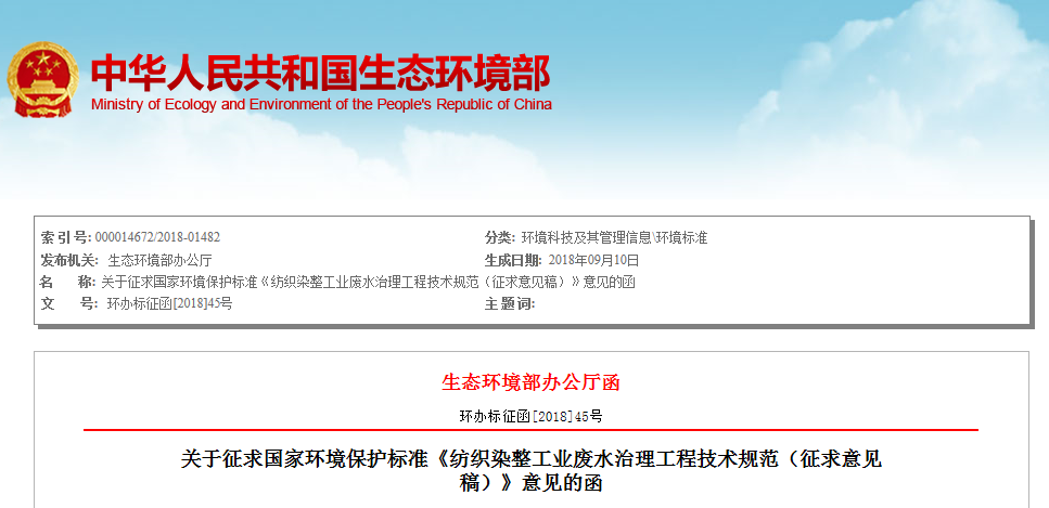 目前,標(biāo)準(zhǔn)編制單位已完成標(biāo)準(zhǔn)的征求意見(jiàn)稿,按照《國(guó)家環(huán)境保護(hù)標(biāo)準(zhǔn)制修訂工作管理辦法》相關(guān)規(guī)定,現(xiàn)將標(biāo)準(zhǔn)征求意見(jiàn)稿印送給你們,請(qǐng)研究提出書(shū)面修改意見(jiàn),于2018年10月15日前反饋我部。標(biāo)準(zhǔn)征求意見(jiàn)稿和編制說(shuō)明可登錄我部網(wǎng)站(http://www.mee.gov.cn/)檢索查閱。