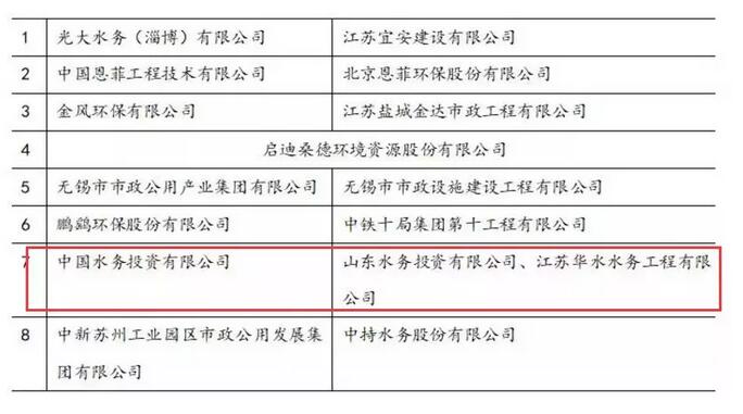 第一名:中國水務(wù)投資有限公司(聯(lián)合體成員:山東水務(wù)投資有限公司、江蘇華水水務(wù)工程有限公司)