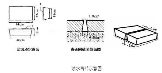 可以看到青磚之間形成一個三角形的縫隙。這樣的造型對排水的幫助是顯而易見的,這些青磚本身滲水透氣性就不錯,雨水透過青磚之間的接口,就進入到地下三角形的縫隙當(dāng)中。磚縫越向下越開闊,雨水自然不容易停留在表層,而是滲入地下,通過地下水系統(tǒng)緩沖和滲排出去。