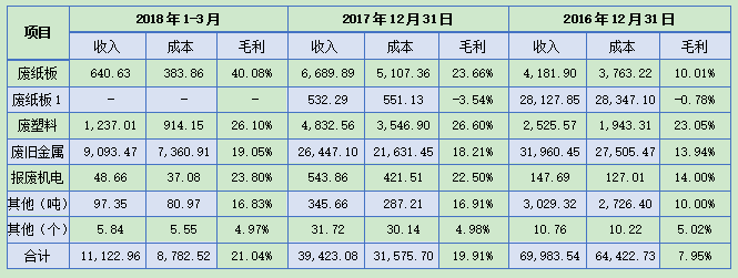 注:廢紙板1是指永川分公司的銷售業(yè)務(wù),現(xiàn)已基本停止廢紙業(yè)務(wù)。