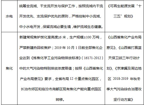 (1)在能源開發(fā)利用過程中,嚴(yán)格遵守國家和山西省的主體功能區(qū)規(guī)劃和生態(tài)功能區(qū)劃,不得在禁止開發(fā)區(qū)、環(huán)境敏感區(qū)及生態(tài)紅線等區(qū)域布局能源建設(shè)項目。在布局建設(shè)能源項目時,應(yīng)堅持“點上開發(fā)、面上保護(hù)”的原則,最大減輕對生態(tài)環(huán)境的不良影響。在布局煤電項目時應(yīng)盡可能兼顧周邊工業(yè)企業(yè)和居民集中供熱需求,采用熱電聯(lián)產(chǎn)或具備一定供熱能力的機(jī)組,以集中供熱替代分散小鍋爐供熱,削減污染物排放量。在布局煤化工項目時應(yīng)考慮水資源承載力,原則上要求不采用地下水。在水資源得到保障的前提下,要求煤電項目盡量與煤化工項目配套建設(shè),利用電廠鍋爐提供煤化工生產(chǎn)中需要的大量蒸汽,減少煤化工項目自備鍋爐的建設(shè)。在布局水電項目時應(yīng)充分考慮其生態(tài)影響,防止對水生態(tài)、水生物造成重大不利影響。水電項目下泄水須滿足壩址下游河道水生生態(tài)、水環(huán)境、景觀、濕地等生態(tài)環(huán)境用水及下游生產(chǎn)、生活取水要求,不得造成脫水河段和對農(nóng)灌、水生生物造成重大不利影響。涉及水生珍稀特有物種重要生境等河段嚴(yán)格水電環(huán)境準(zhǔn)入。