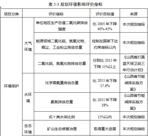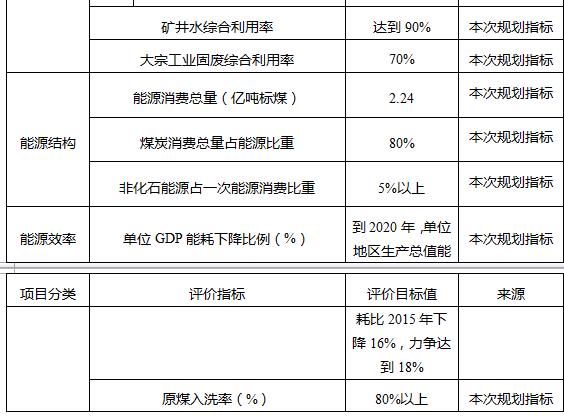 到2020年,單位地區(qū)生產(chǎn)總值二氧化碳排放強(qiáng)度完成國家下達(dá)指標(biāo);能源領(lǐng)域二氧化硫、氮氧化物、煙塵、工業(yè)粉塵排放總量控制在國家下達(dá)約束指標(biāo)以內(nèi)。礦井水綜合利用率達(dá)到90%,大宗工業(yè)固廢綜合利用率達(dá)到70%。劣Ⅴ類水體比例在15%以內(nèi)。礦山生態(tài)修復(fù)治理取得重大進(jìn)展。