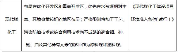 (一)嚴(yán)格執(zhí)行《關(guān)于落實<水污染防治行動計劃>實施區(qū)域差別化環(huán)境準(zhǔn)入的指導(dǎo)意見》和《現(xiàn)代煤化工建設(shè)項目環(huán)境準(zhǔn)入條件》的相關(guān)要求,在保護(hù)生態(tài)的前提下,科學(xué)布局煤化工產(chǎn)業(yè)。
