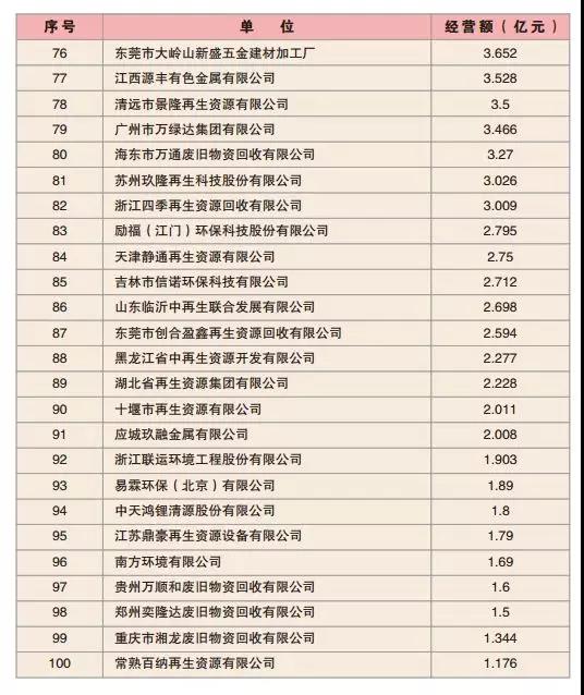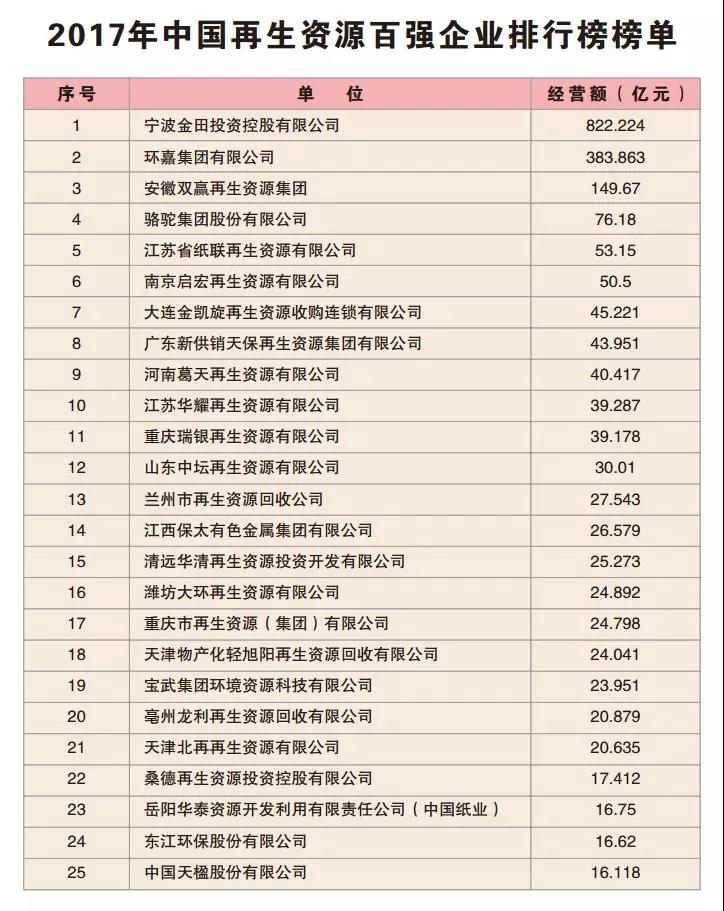 原標(biāo)題:官宣!2017中國再生資源百強(qiáng)企業(yè)經(jīng)營狀況調(diào)查報告!附百強(qiáng)企業(yè)排行榜單新鮮出爐!