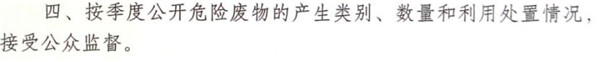 同樣按照江蘇省環(huán)保廳的要求,每個(gè)危險(xiǎn)廢物產(chǎn)生單位和經(jīng)營單位都要通過現(xiàn)場公示、網(wǎng)站公布、報(bào)刊媒體等多種渠道主動(dòng)公開危險(xiǎn)廢物產(chǎn)生、處置、利用的情況,接受社會(huì)的監(jiān)督。