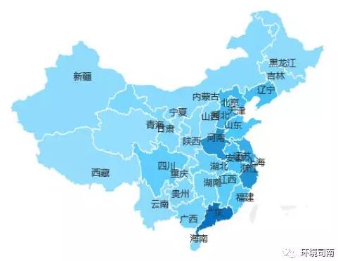 容易出環(huán)衛(wèi)大項(xiàng)目的10個(gè)省份中,廣東、江蘇、浙江、山東、四川等五個(gè)省為傳統(tǒng)環(huán)衛(wèi)大省,河南、河北、福建、江西、安徽等五個(gè)省為新興環(huán)衛(wèi)大省。
