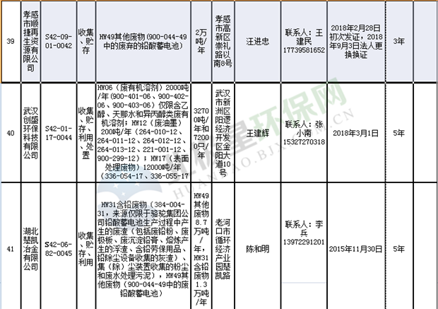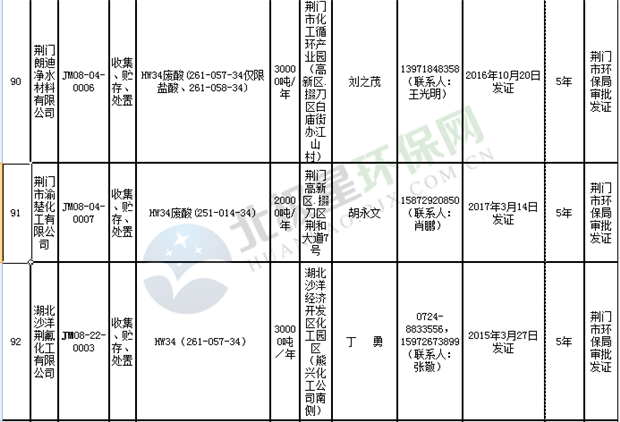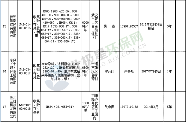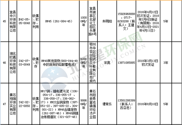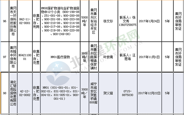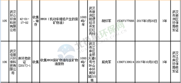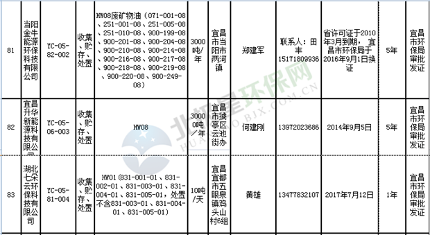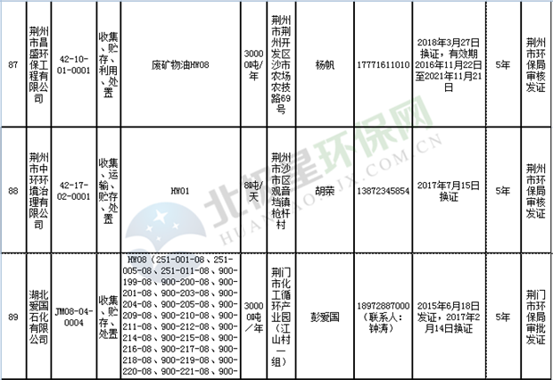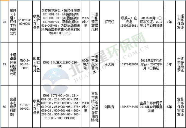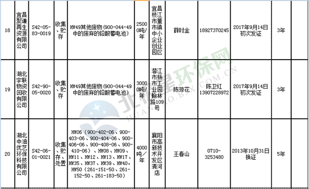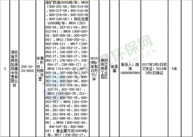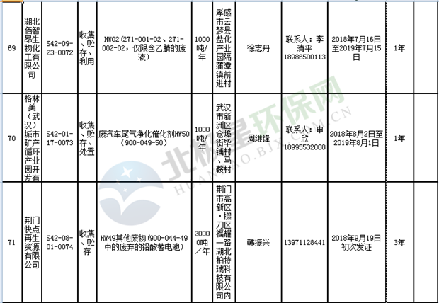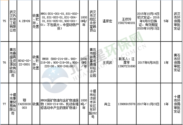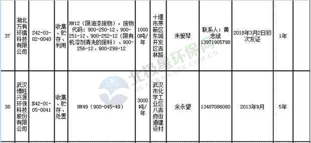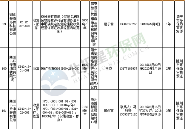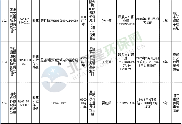 日前湖北省環(huán)保廳發(fā)布了《湖北省危險廢物經(jīng)營許可證》單位名錄(截至2018年10月12日,共108家),且附有聯(lián)系電話,具體內(nèi)容如下: