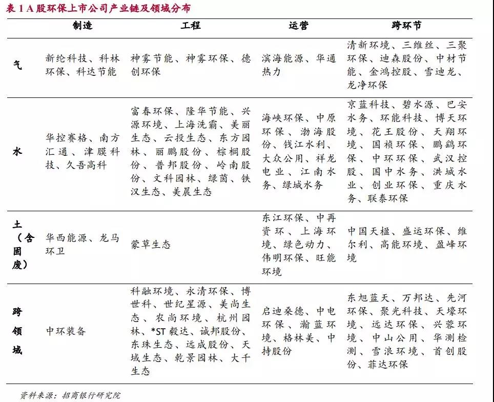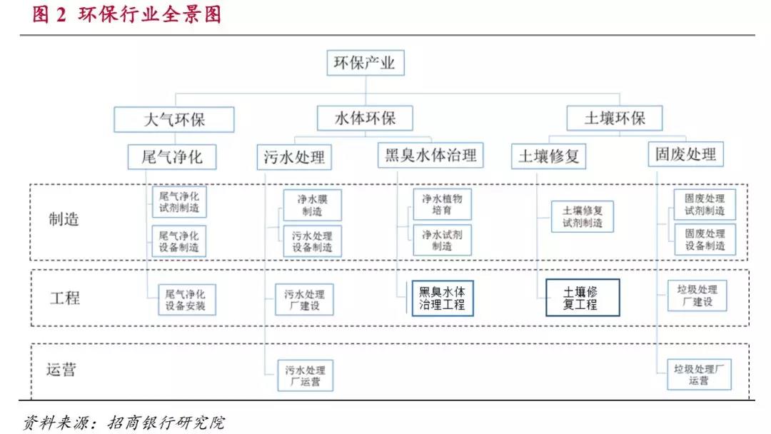 環(huán)保產(chǎn)業(yè)除了按照環(huán)保領(lǐng)域可以分為氣、水、土三個(gè)方面以外,從產(chǎn)業(yè)鏈的角度還可以分為環(huán)保制造,環(huán)保工程和環(huán)保運(yùn)營(yíng)三個(gè)環(huán)節(jié)。