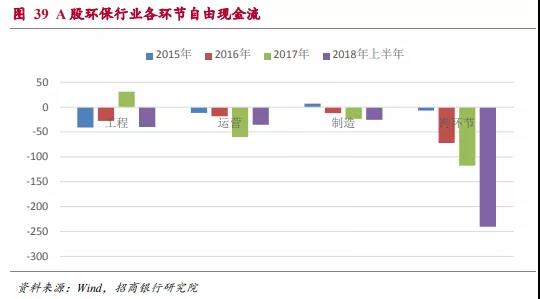 根據(jù)各環(huán)節(jié)自由現(xiàn)金流的分析,工程環(huán)節(jié)的自由現(xiàn)金流在2017年出現(xiàn)了轉(zhuǎn)正的情況,這很有可能與我國(guó)在工程環(huán)節(jié)推行PPP模式有關(guān),這一模式對(duì)改善工程類企業(yè)的現(xiàn)金流有明顯的益處。而運(yùn)營(yíng)環(huán)節(jié)的自由現(xiàn)金流在2017年出現(xiàn)惡化,也是低于市場(chǎng)整體預(yù)期的。