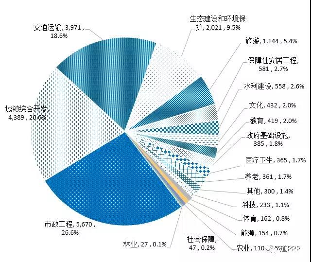 管理庫共包括能源、交通運(yùn)輸、水利建設(shè)、生態(tài)建設(shè)和環(huán)境保護(hù)、市政工程、城鎮(zhèn)綜合開發(fā)、農(nóng)業(yè)、林業(yè)、科技、保障性安居工程、旅游、醫(yī)療衛(wèi)生、養(yǎng)老、教育、文化、體育、社會(huì)保障、政府基礎(chǔ)設(shè)施和其他19個(gè)一級(jí)行業(yè)。示范項(xiàng)目及落地示范項(xiàng)目涵蓋全部19個(gè)行業(yè)。