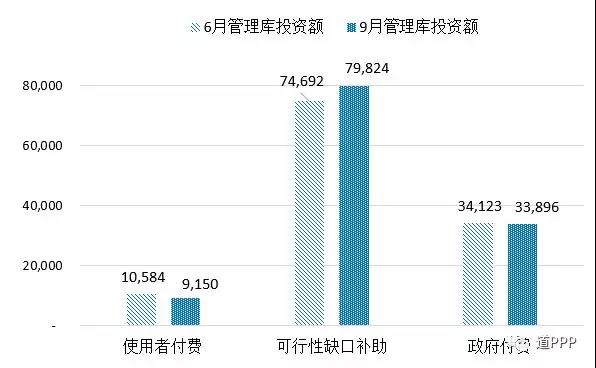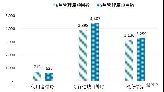 億元,分別占管理庫的43.5%和50.5%。京津冀累計(jì)項(xiàng)目總數(shù)423個(gè)、投資額7,822億元,分別占管理庫的5.1%和6.4%;累計(jì)落地項(xiàng)目總數(shù)216個(gè)、投資額4,763億元,分別占管理庫落地項(xiàng)目的5.3%和7.5%?;貓?bào)機(jī)制方面,三季度使用者付費(fèi)類項(xiàng)目凈減項(xiàng)目92個(gè)、投資額1,435億元;可行性缺口補(bǔ)助類項(xiàng)目新增項(xiàng)目509個(gè)、投資額5,132億元;政府付費(fèi)類項(xiàng)目新增123個(gè),投資額凈減227億元。管理庫累計(jì)使用者付費(fèi)類項(xiàng)目623個(gè)、投資額9,150億元;累計(jì)可行性缺口補(bǔ)助(即政府市場混合付費(fèi))類項(xiàng)目4,407個(gè)、投資額8.0萬億元;累計(jì)政府付費(fèi)類項(xiàng)目3,259個(gè)、投資額3.4萬億元。