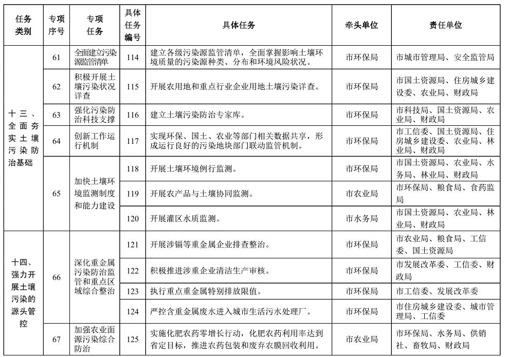 責(zé)任單位:市環(huán)保局、國(guó)土資源局、科技局、財(cái)政局,各縣(市、區(qū))人民政府(管委會(huì))