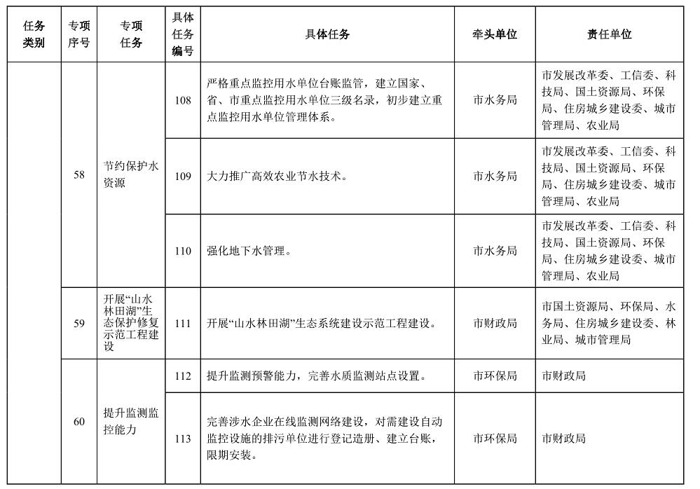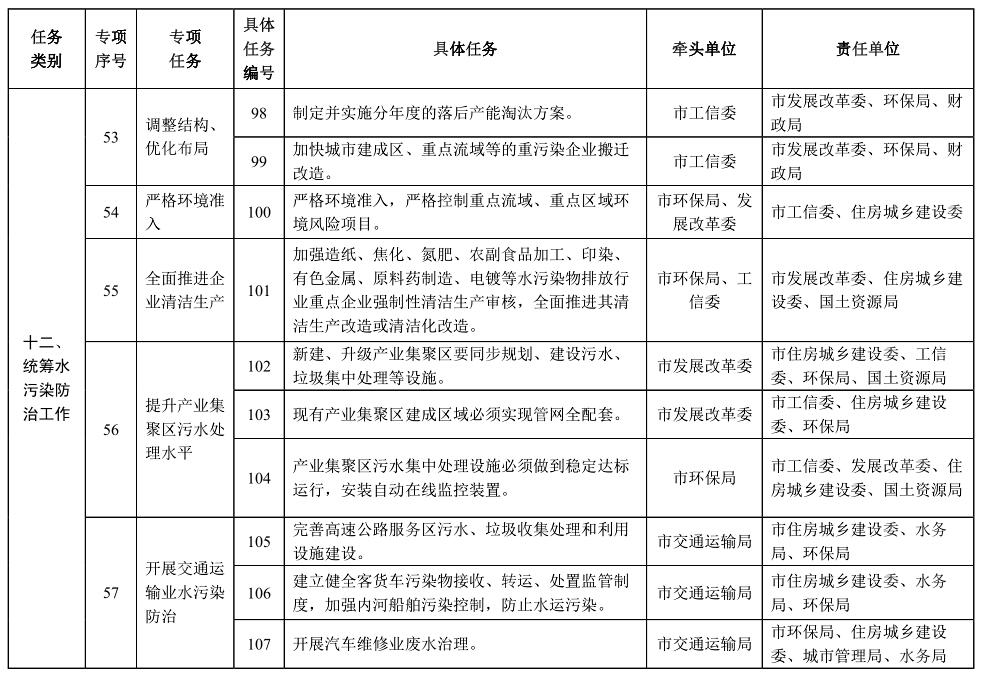 責(zé)任單位:市發(fā)展改革委、環(huán)保局、水務(wù)局、國(guó)土資源