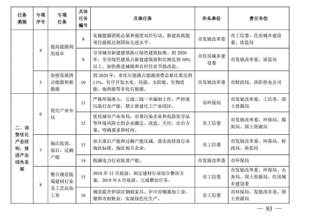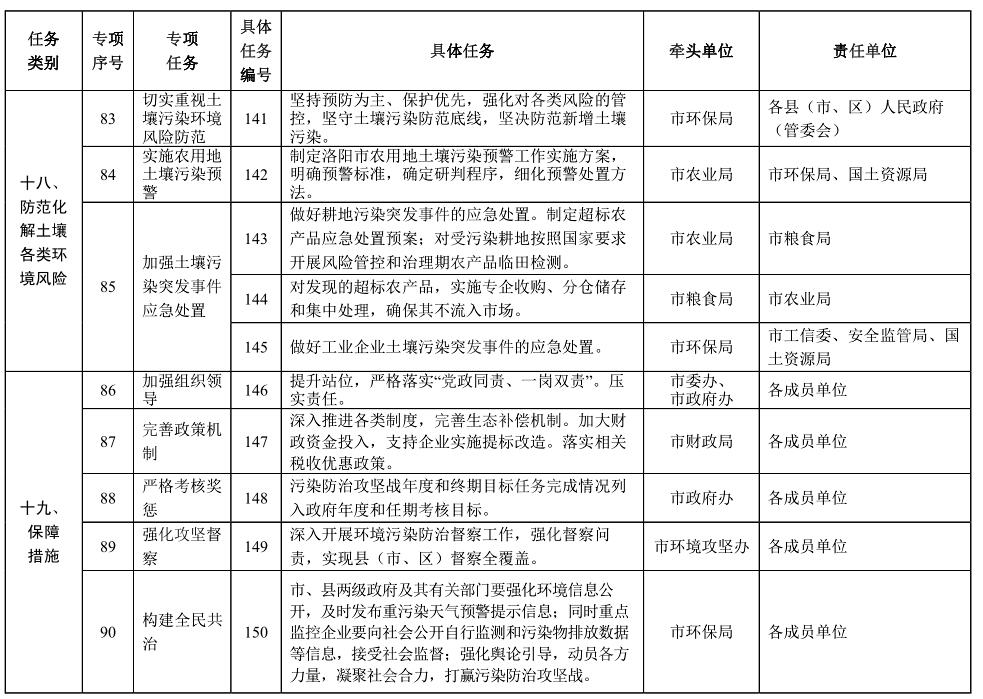 責(zé)任單位:市環(huán)保局、國(guó)土資源局,洛陽(yáng)供電公司,各縣(市、區(qū))人民政府(管委會(huì))