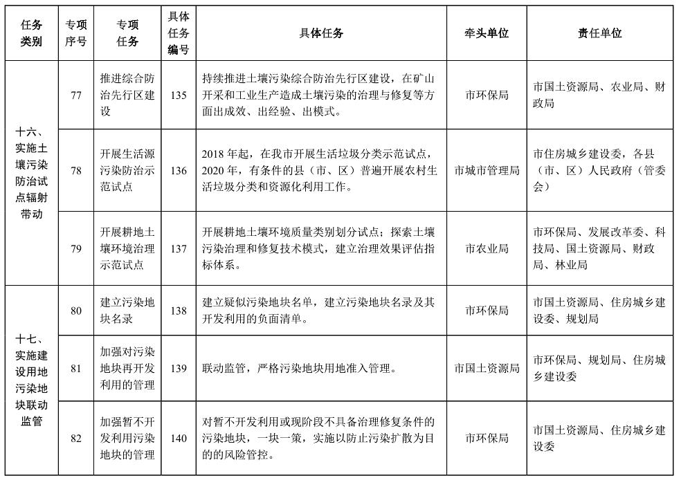 責(zé)任單位:市國(guó)土資源局、環(huán)保局、水務(wù)局、住房城鄉(xiāng)建設(shè)委、林業(yè)局、城市管理局,各縣(市、區(qū))人民政府(管委會(huì))