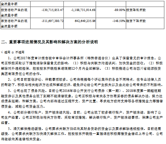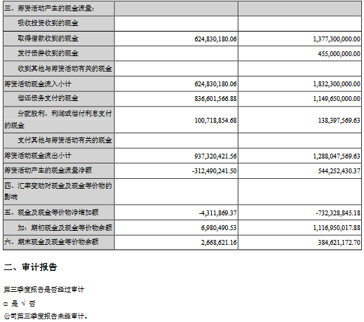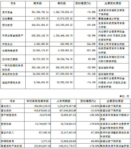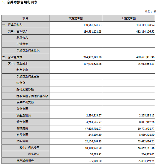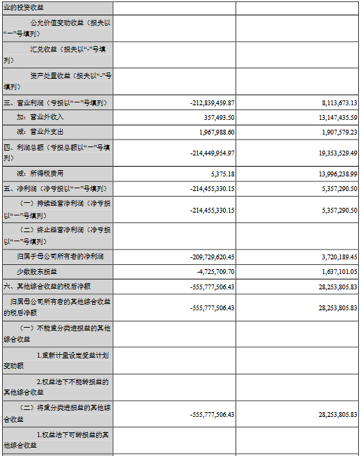 公告顯示,公司前三季度營(yíng)業(yè)收入584,091,258.33元,同比減少52.62%,歸屬上市公司股東的凈利潤(rùn)-209,729,620.45元,同比減少5737.61%。