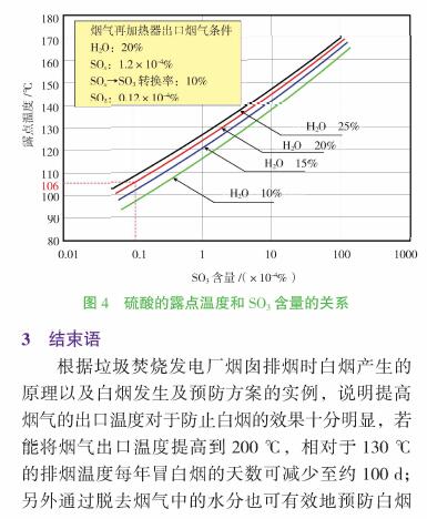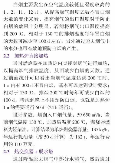 介紹了垃圾焚燒發(fā)電廠煙囪排白煙產(chǎn)生的原理,并以垃圾焚燒煙氣中白煙發(fā)生及預(yù)防方案的實例,說明提高排煙的出口溫度或通過脫去煙氣中的水分可以有效地預(yù)防白煙的產(chǎn)生。通過運(yùn)營數(shù)據(jù)對比,說明采用加熱爐直接加熱或者采用熱交換器、脫水塔組合的方式可以實現(xiàn)防白煙的目的。但同時需要注意煙囪排煙溫度不能過低以避免硫酸酸露點腐蝕的情況發(fā)生。