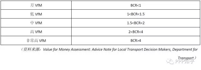 英國交通部對效益成本比(BCR-Benefit Cost Ratio)所反映的物有所值(VfM)給出了定性的導(dǎo)則,幫助地方政府做出投資決策。可以看出Crossrail處于中到高VfM的范圍。