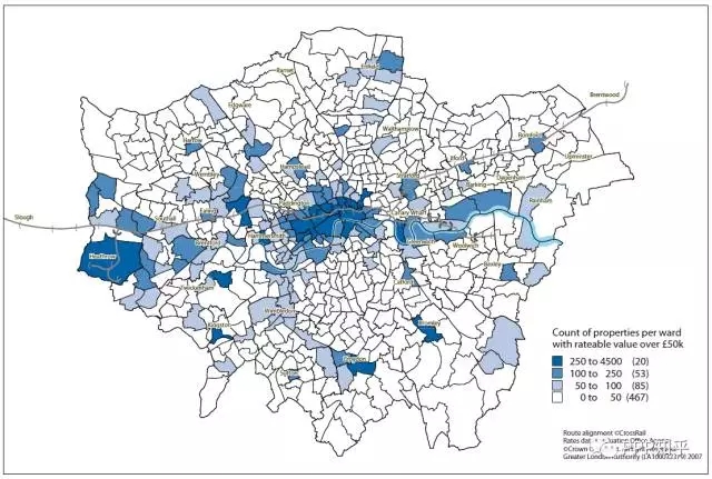 PPP模式可能使項(xiàng)目更加物有所值,公共預(yù)算支出更有效率,但單純依靠政府付費(fèi),財(cái)政可承受能力終歸是有上限的。因此,如何挖掘項(xiàng)目本身的商業(yè)潛力和拓展公共支出的來源就顯得尤為重要。大型基礎(chǔ)設(shè)施項(xiàng)目往往具有外部性,可以采用適當(dāng)?shù)姆椒▽⑵渫獠啃б鎯?nèi)在化,來反哺項(xiàng)目本身。橫穿倫敦108公里的伊麗莎白線的總建設(shè)預(yù)算達(dá)148億英鎊,計(jì)劃通過稅收增量融資和開發(fā)基礎(chǔ)設(shè)施費(fèi)的模式來將地鐵帶動(dòng)的土地和物業(yè)價(jià)值升值反饋給軌道項(xiàng)目。一方面,在未來24-30年內(nèi),對該軌道項(xiàng)目收益的價(jià)值5.5萬英鎊以上的商業(yè)物業(yè)額外征收2%的商業(yè)物業(yè)稅(BRS-Business Rate Supplement),如下圖所示。