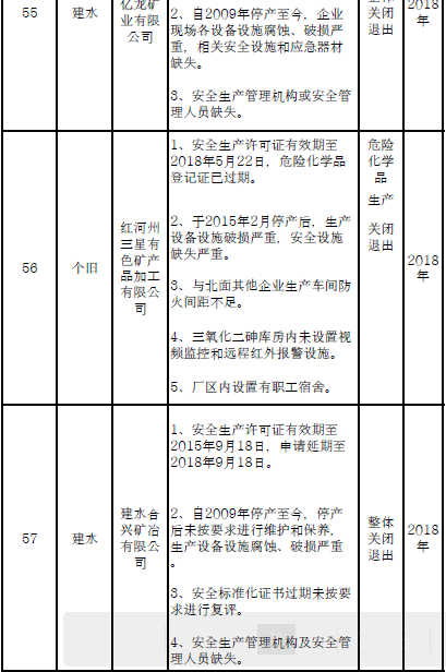 附件:1.云南省危險化學(xué)品安全工程三年行動計劃關(guān)閉退出企業(yè)(裝置)名單(分地區(qū))