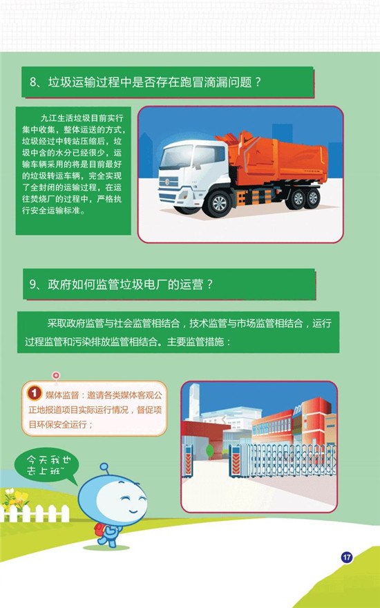 九江市將對該項目實行立體式監(jiān)管,采取政府監(jiān)管與社會監(jiān)管相結(jié)合,技術(shù)監(jiān)管與市場監(jiān)管相結(jié)合,運行過程監(jiān)管和污染排放監(jiān)管相結(jié)合。媒體監(jiān)督方面,邀請各類媒體客觀公正地報道項目實際運行情況,督促項目環(huán)保安全運行。政府監(jiān)管方面,派專人駐廠監(jiān)管,實時查看廠內(nèi)運行情況,行業(yè)管理部門定期不定期進(jìn)行現(xiàn)場巡查,廠內(nèi)所有運行指標(biāo)與環(huán)保部門實行在線聯(lián)網(wǎng),所有數(shù)據(jù)實時監(jiān)控。企業(yè)將在廠門口安裝電子屏實時發(fā)布數(shù)據(jù),主動聘請具有相關(guān)檢測資質(zhì)的第三方檢測機(jī)構(gòu),對工廠的運營進(jìn)行監(jiān)測監(jiān)管,實現(xiàn)專業(yè)監(jiān)管,獨立監(jiān)管。公眾也可以通過開放日、預(yù)約等形式進(jìn)行參觀監(jiān)督。