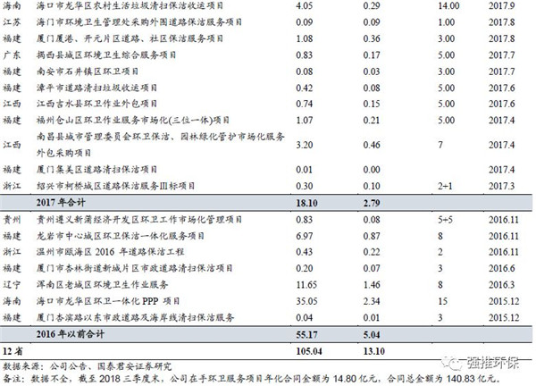 環(huán)衛(wèi)服務(wù)快速發(fā)展,在手訂單充足。公司從2015年開始開拓環(huán)衛(wèi)服務(wù)業(yè)務(wù),中標(biāo)??邶埲A區(qū)及沈陽渾南區(qū)項(xiàng)目標(biāo)志公司具備全國拓展環(huán)衛(wèi)服務(wù)業(yè)務(wù)的能力。截至目前,公司在手環(huán)衛(wèi)服務(wù)項(xiàng)目年化合同金額為14.80億元,合同總金額為140.83億元,充足的在手訂單是未來業(yè)績高增長的有力保障。