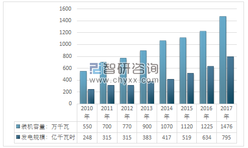 2010-2017年我國生物質(zhì)發(fā)電裝機(jī)容量及發(fā)電規(guī)模情況