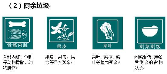 2.每類生活垃圾下設(shè)典型組分的小標(biāo)志,具體標(biāo)志如下:
