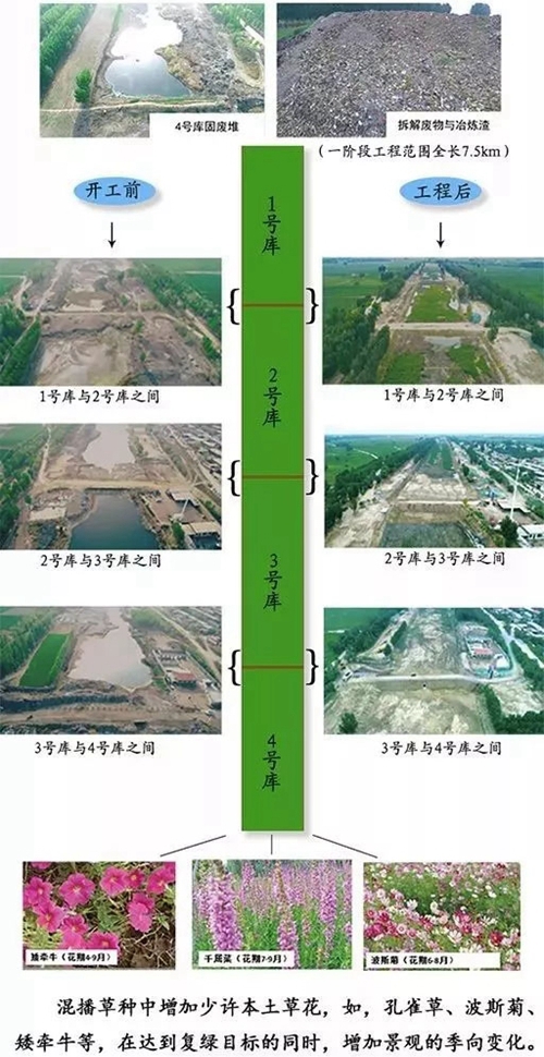 現(xiàn)在的唐河污水庫,煥然一新。按照未來規(guī)劃,這里將打造生態(tài)廊道和唐河郊野公園。昔日的垃圾污水庫不見了,種類多樣的花草盛開在這片區(qū)域內(nèi)。