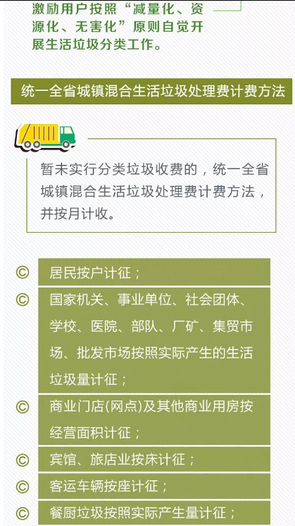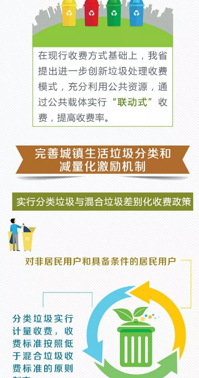 到2020年底前各市、縣(市、區(qū))要全面建立,覆蓋到所有建制鎮(zhèn)的生活垃圾處理收費(fèi)制度,按照《通知》,對(duì)非居民用戶和具備條件的居民用戶實(shí)行分類垃圾與混合垃圾差別化收費(fèi)政策,激勵(lì)用戶按照“減量化、資源化、無(wú)害化”原則,自覺(jué)開展生活垃圾分類工作,促進(jìn)垃圾源頭減量,推動(dòng)可再生資源回收利用。