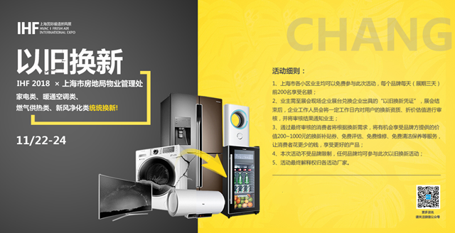 IHF2018 是暖通新風(fēng)行業(yè)的盛會,由權(quán)威機構(gòu)聯(lián)合主辦,匯聚300+品牌參展商,邀請眾多行業(yè)協(xié)會涉及暖通工程、空調(diào)工程、凈水技術(shù)、房地產(chǎn)商、建筑師、暖通采購設(shè)計師、物業(yè)經(jīng)理以及廣大終端用戶逾10w+普通觀眾以及15000+專業(yè)觀眾前來參觀采購。 “IHF 2018 上海國際暖通新風(fēng)展”在往屆新風(fēng)凈化展和暖通展的基礎(chǔ)上整合升級,依托城博會,聯(lián)合多家知名機構(gòu),以“推動行業(yè)、引領(lǐng)企業(yè)、服務(wù)市場”為主旨和“專業(yè)化、市場化、品牌化”的辦展方針,全面打造上海城博會“宜居舒適生活”板塊-IHF 暖通新風(fēng)展,成為國際暖通空調(diào)、新風(fēng)領(lǐng)域一站式專業(yè)采購平臺。