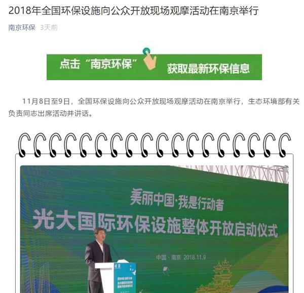 2017年7月,根據(jù)環(huán)保部、住建部《關(guān)于推進環(huán)保設(shè)施和城市污水垃圾處理設(shè)施向公眾開放的指導意見》精神,江蘇省環(huán)保廳聯(lián)合省住建廳啟動環(huán)保設(shè)施向公眾開放工作,5家單位成為第一批全國環(huán)保設(shè)施向公眾開放點,分別是:江蘇省環(huán)境監(jiān)測中心、江蘇省南京環(huán)境監(jiān)測中心、南京鐵北污水處理廠、光大環(huán)保能源(南京)有限公司、南京凱燕電子有限公司;2018年11月,江蘇省生態(tài)環(huán)境廳和省住建廳又公布了全省40個開放點名單,實現(xiàn)全省13個設(shè)區(qū)市全覆蓋。